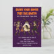 Planning a Halloween party and want your invite to stand out? This spooky skeleton invitation is just the thing! Set on a rich purple background, it features dancing skeletons in costumes, a ghost carrying a pumpkin and black cat, and flying bats to complete the Halloween look. Great for costume contests, trick-or-treat gatherings, or lively October parties, this invite sets the stage for a night of fun. It works beautifully for house parties, school events, or community celebrations. Why is it special? The bold “Shake Your Bones This Halloween” headline with festive artwork makes sure your guests know it’s going to be a night full of dancing, laughter, and spooky fun.