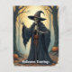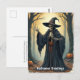Spooky Skeleton Witch in Haunted Forest Halloween Postcard