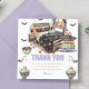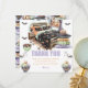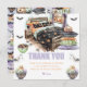 Show your gratitude with this whimsical Halloween thank you card. The design features a cosy watercolor bed with playful skeleton hands peeking out from beneath, surrounded by festive Halloween decor. It's the perfect way to express thanks and add a touch of spooky fun to your birthday sleepover party. Personalise it to make your thank you note even more memorable.