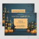 The front showcases a spellbinding scene with a wise wizard and a mischievous witch, both brewing up trouble (and maybe a potion or two)! Surrounded by glowing jack-o'-lanterns and swirling magical energy, this card sets the tone for an unforgettable evening of spooky fun.