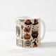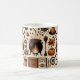 A cosy and festive Halloween mug featuring a whimsical pattern of witches' hats, cauldrons, coffee beans, and pumpkin spice latte illustrations. Perfect for enjoying your favourite fall beverages during the spooky season.