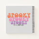 This design showcases the phrase "Spooky Spooky Spooky Vibes" arranged in a cascading, stacked format. The word "Spooky" is repeated three times, each in a different colour—starting with a vibrant orange, transitioning to a soft pink, and ending with a pastel purple. The letters are thick and rounded, giving a playful and bubbly appearance that contrasts with the spooky theme. The word "vibes" is written below in a delicate, black cursive font, adding a stylish touch to the overall design. Small star accents surround the text, enhancing the whimsical and festive mood. This design is perfect for a fun and light-hearted take on Halloween.