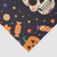 Unwrap the Halloween spirit with this festive tissue paper. A vibrant sugar skull takes centre stage, surrounded by grinning jack-o'-lanterns and scattered Halloween candies. A constellation of golden stars pops against the dark background, making it the perfect finishing touch for any spooky gift.