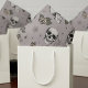 This fun feminine gothic tissue paper is hand-drawn in black ink by Nathalie Portet, featuring whimsical small skulls and blush pink and cream roses and spiderwebs against an elegant taupe grey background.