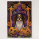 Spooky Tibetan Spaniel Dog Halloween Witch Pumpkin Jigsaw Puzzle