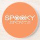 Simple and modern Spooky Typography Halloween Coaster in orange and white featuring a cool text design with two whimsical ghosts peeking through the word "Spooky." This fun Halloween coaster is both decorative and useful for protecting your furniture! Easy to customise, add your own spooky text. Click on the "Customise It" button to move the design element, change the fonts or text colours, and add/remove additional text.
