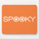 Simple and modern Spooky Typography Halloween Mousepad in orange and white featuring a cool text design with two whimsical ghosts peeking through the word "Spooky." This sassy mouse mat is a fun way to show your Halloween spirit and spruce up your work area! Easy to customise, simply add your own spooky text! Click on the "Customise It" button to move the design element or add your own personalised text.