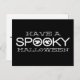 Simple and modern Spooky Typography Halloween Greeting Postcard in black and white featuring a cool text design with two whimsical ghosts peeking through the word "Spooky." This stylish postcard is a great way to wish friends and family a Happy Halloween. Easy to customise, add your own spooky text! Click on the "Customise It" button to move the design element, change the fonts or text colours, and add/remove additional text.