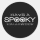 Simple and modern Spooky Typography Halloween Stickers in black and white featuring a cool text design with two whimsical ghosts peeking through the word "Spooky." These sassy Halloween stickers make great party favours! Easy to customise, add your own spooky text. Click on the "Customise It" button to move the design element, change the fonts or text colours, and add/remove additional text.