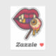 Add a delightfully creepy touch to your gear with this unique vinyl sticker! It features vibrant red vampire lips with sharp fangs and distinct gold and purple teeth, holding a spooky eyeball lollipop that's oozing golden liquid. Perfect for Halloween enthusiasts, horror fans, or anyone who loves quirky, macabre art. Apply it to your laptop, water bottle, notebook, or use it as a fun, custom decoration for your Halloween party. This durable and eye-catching sticker is sure to make a statement!