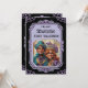 Customise the invitation with your party details, including the date, time, location, and dress code. The design features a black background with a gothic frame, skull accents, and a touch of purple for a touch of mystery.
