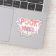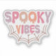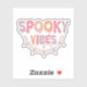 This fun and festive Halloween design features the phrase "Spooky Vibes" in a playful, dripping font that gives the text a gooey, eerie effect. The words are filled with soft, pastel shades of pink, orange, purple, and peach, adding a lighthearted and whimsical twist to the spooky theme. Beneath the text, a simple spider web illustration in a soft brown colour adds a classic Halloween touch, tying the design together. The combination of the pastel colours and the spooky elements creates a unique contrast that’s both cute and a little bit creepy, making it perfect for Halloween