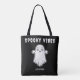 Spooky Vibes Ghost With Custom Name Black White Tote Bag