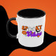 Start your day with a touch of Halloween magic with this cute and colourful “Spooky Vibes” coffee mug! This charming mug features a retro 1970s-inspired design with the phrase “Spooky Vibes,” where the 'O’s are cleverly replaced by ghost illustrations. The design is adorned with vibrant flowers, a heart, and playful bats, all in the classic Halloween colours of orange, black, white, and purple.