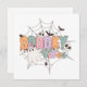 Spooky Vibes Halloween design features a big spider web with spiders, ghosts, skulls, bats, and colourful text that reads Spooky Vibes!