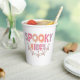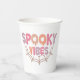 This fun and festive Halloween design features the phrase "Spooky Vibes" in a playful, dripping font that gives the text a gooey, eerie effect. The words are filled with soft, pastel shades of pink, orange, purple, and peach, adding a lighthearted and whimsical twist to the spooky theme. Beneath the text, a simple spider web illustration in a soft brown colour adds a classic Halloween touch, tying the design together. The combination of the pastel colours and the spooky elements creates a unique contrast that’s both cute and a little bit creepy, making it perfect for Halloween