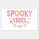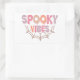 This fun and festive Halloween design features the phrase "Spooky Vibes" in a playful, dripping font that gives the text a gooey, eerie effect. The words are filled with soft, pastel shades of pink, orange, purple, and peach, adding a lighthearted and whimsical twist to the spooky theme. Beneath the text, a simple spider web illustration in a soft brown colour adds a classic Halloween touch, tying the design together. The combination of the pastel colours and the spooky elements creates a unique contrast that’s both cute and a little bit creepy, making it perfect for Halloween