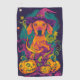 Spooky Vizsla Dog Halloween Witch And Pumpkin Golf Towel