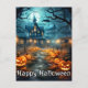 Spooky Well-lit Nefarious Pumpkin Happy Halloween Postcard