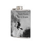 The flask itself is fine. It’s a cheap flask, obviously bought in bulk, however am prepared to overlook that. Given that it is a personalized item, I would have liked to have seen gift boxing instead of the generic packaging. Terrible printing, and/or quality. It’s a cheap, tacky vinyl. It is not cut straight and is also applied in a way that it is overhanging the bottom, causing the glue to catch on items and it will eventually roll and tear, damaging the wrap.