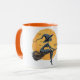 This customisable "Halloween" themed mug design features a spooky witch flying on broomstick with a text that you can personalise.