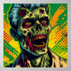 Halloween poster. Scary decaying zombie done in a pop art comic book style ai art. Cool for Halloween or anyone who loves zombies.