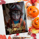 This is the one Halloween card grandparents will never throw away. Celebrate Halloween with high-flying spooky fun! This personalised Halloween card features a photo of a boy dressed as a zombie pilot, complete with helmet and goggles, soaring into the season in style. Personalise it with your child's photo. At the bottom, bold “Happy Halloween” text is playfully designed with a jack-o’-lantern “O,” and beneath it you can customise with your family name for a truly one-of-a-kind card. On the back, flip it over to personalise the default message and make it uniquely yours.