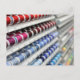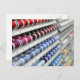 Features a photo of a store shelf full of sewing thread spools in all different colours.