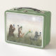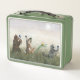 This is a standard metal lunchbox that appears to work just fine. We designed this box ourselves with an uploaded photo and custom text on the front and back. It looks absolutely beautiful except the front of the lunchbox is not centered like it shows in the photo. The print borders don't align with the inset flat part of the box where the preview photo online showed it perfectly centered in there. The back looks nice and centered though.