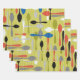 Make your Nifty 50s Party gifts extra special with this set of three 19” x 29” semi-gloss wrapping paper sheets with a fun 50s-style image of black, grey, blue, green, orange and white spoons on a background of white stripes on yellow-green. See the entire Nifty 50s Wrapping Paper collection in the PARTY FAVORS section.