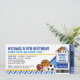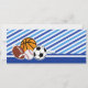 Come kick up some FUN! Celebrate your Birthday with our Sport Party Invitation. Design features basketball, baseball, rugby, american football and soccer balls on top of dark blue stripes in the shapes of entrance tickets with admit one text on the bottom. This allstar sport ticket invitations is perfect for your sport themed birthday party, sport first birthday party or sport events ticket invitations.