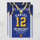 Celebrate your special day with this Basketball Jersey Birthday Invitation, designed for true basketball fans! Featuring a bold jersey design inspired by the iconic purple and gold colours, this invite is perfect for kids, teens, and adults who love the game. Personalise it easily with your name, age, party details, and even team number in just a few clicks. Available in multiple sizes, printed on premium quality paper with a wide range of finishes to match your style. Choose from different paper types, fast printing, and quick shipping so your invitations arrive on time. Whether it’s for a sports-themed party or a Lakers fan celebration, this invite is the perfect way to get your guests excited.