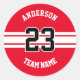 Sport Name, Team and Number Red Designs Classic Round Sticker