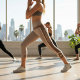 Sportive Mocha Mousse Geometric Stripes Monogram Capri Leggings