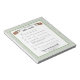 This fun notepad features a green pinstripe background with soccer ball, football, baseball, and basketball accents and a template to simply writing school notes/excuses to send in to school. Personalise names and contact info. See our School Supplies section for more designs and for templates for mutliple children.