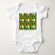This baby bodysuit has a novelty design of different sports balls, including basketballs, baseball, billiard balls, soccer balls, footballs, and golf balls.