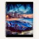 This notebook is shown in a regular shape with college rule pages with a sports car art print.