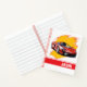 This notebook is shown in a regular shape with college rule pages with a sports car photo art print.