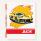 This notebook is shown in a regular shape with college rule pages with a sports car photo art print.
