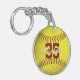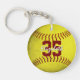 This softball keychain features the realistic image of a grungy looking softball with easy-to-personalise player name & jersey number on the front plus school name and mascot name on the back - by katz_d_zynes