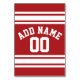 Red and White colours -- If you are a Fantasy Football team owner, make your own products and show off to your friends! Or - Do you play High School Football and want a memento? This jersey design is perfect for anyone playing sports.