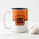 Coffee mug is shown here with a colour block style print with a sample letter, customise and change colours and letter or buy as is.
