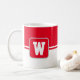 Coffee mug is shown here with a colour block style print with a sample letter, customise and change colours and letter or buy as is.