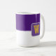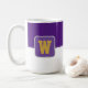 Coffee mug is shown here with a colour block style print with a sample letter, customise and change colours and letter or buy as is.