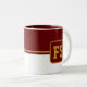 Coffee mug is shown here with a colour block style print with a sample letter, customise and change colours and letter or buy as is.