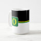 Coffee mug is shown here with a colour block style print with a sample letter, customise and change colours and letter or buy as is.