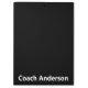 This clipboard is black. You can customise the clipboard with a coach's name or other text. The text is white.