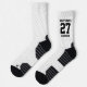 Prepare your team for the win with these sports socks by JessicaAmber! These high performance crew socks feature bold varsity-style lettering and a black and white colour scheme. A faint dot pattern emulates the look of net mesh polyester, commonly seen in basketball uniforms. You can add your team name, team number, and last name. Make a set for your team to win in style! ••• For more athletic apparel, check out my store Zazzle.com/JessicaAmberArtist 🔹For custom orders, message me on Zazzle