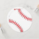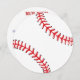 This baseball sports themed round party invitation features a red and white baseball on the front . The back of the invitation has template areas for you to customise with your party information.