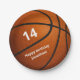 This sporty basketball birthday party paper plate features a classic style basketball graphic upon which you can customise the text - by katz_d_zynes